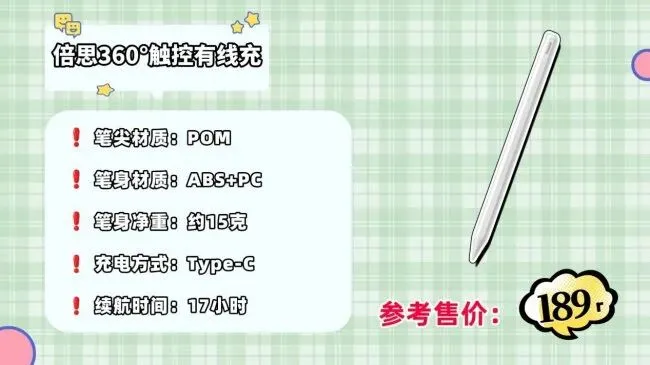 Top2:倍-思360°触控有线充电容笔