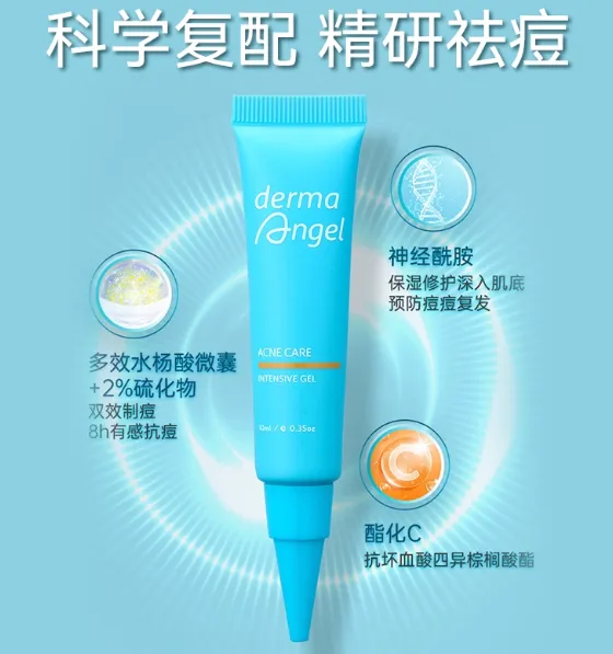 护妍天使祛痘凝胶采用专利包裹性水杨酸复配二硫化物,搭配神经酰胺兜底,质地清爽易吸收,点涂可快速瘪痘,还能淡化痘印,敏肌也可安心使用;