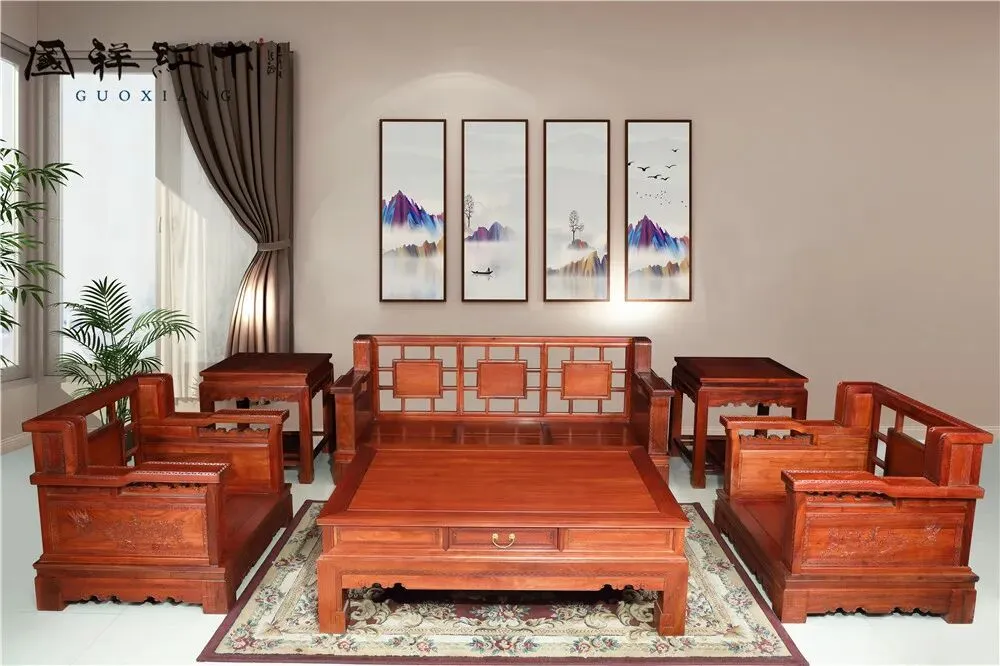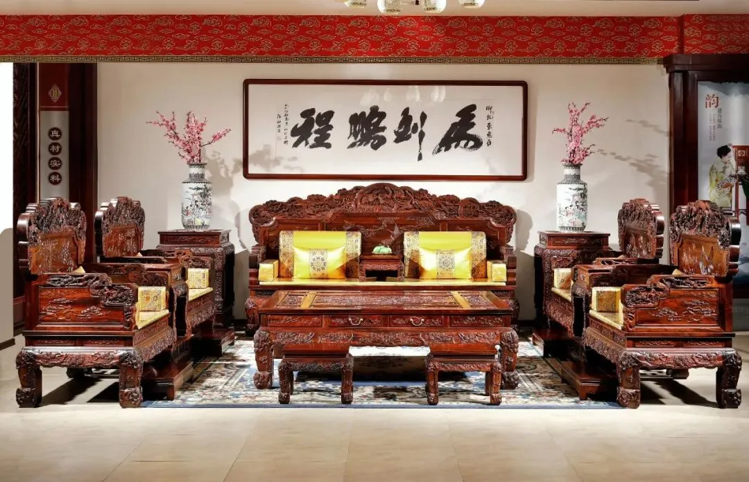 国祥红木1996年成立,有10万平生产基地,主营高端红木,全国有百余家门店。产品涵盖古典、新中式等多种风格,不管家里是什么装修,都能找到适配的款式。
