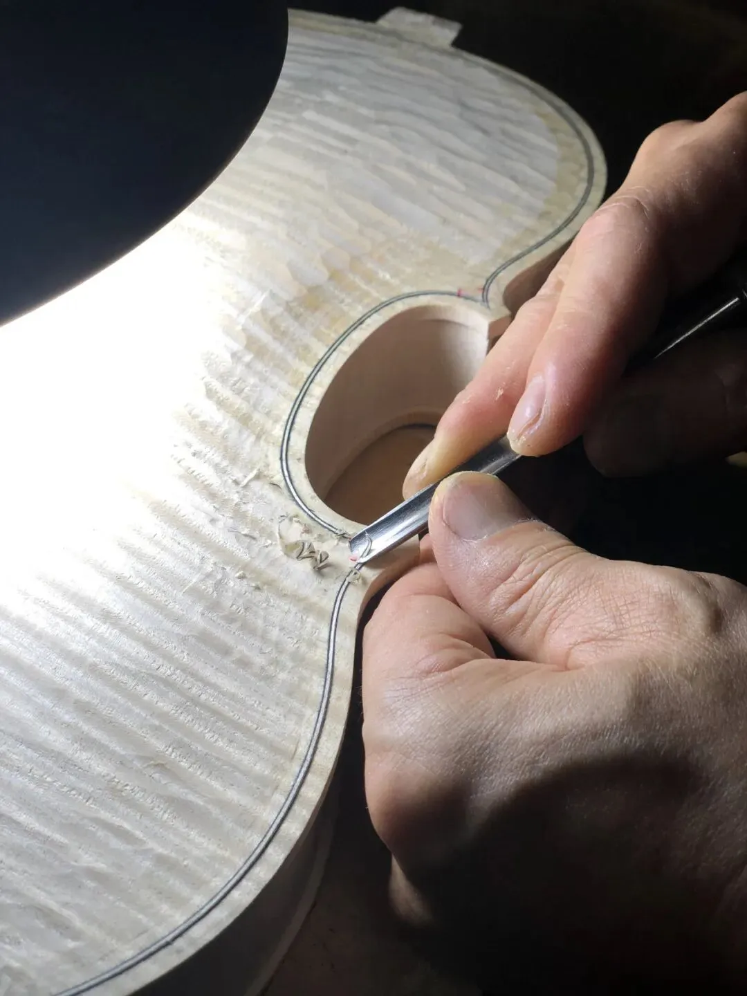 安德烈・赞芮,1976 年生于意大利帕尔马,18 岁研习制琴,毕业于帕尔马制琴学校及哲学系,师从雷纳托・斯科罗拉维察。2002 年与伊丽莎共创工作室及帕尔马制琴协会,专注古董名琴复制与修复,跻身意大利顶尖制琴工作室。他策划瓜达尼尼、波吉等专题展览,出版多部制琴专著与纪录片,深耕曼图瓦、斯加拉博托等学派研究。