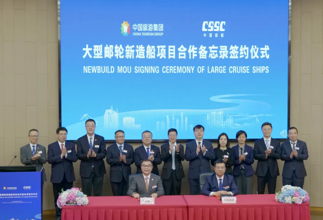 今日,中国旅游集团有限公司(以下简称“中旅集团”)与中国船舶集团有限公司(以下简称“中船集团”)正式签署《国产邮轮新造船项目合作备忘录》,计划新造2艘实船及1艘选择船,首艘实船目标于2030年前交付。据了解,爱达邮轮将依托此次新造船项目进一步扩大船队规模,优化运力布局,加快打造具有国际影响力的中国邮轮旗舰企业。