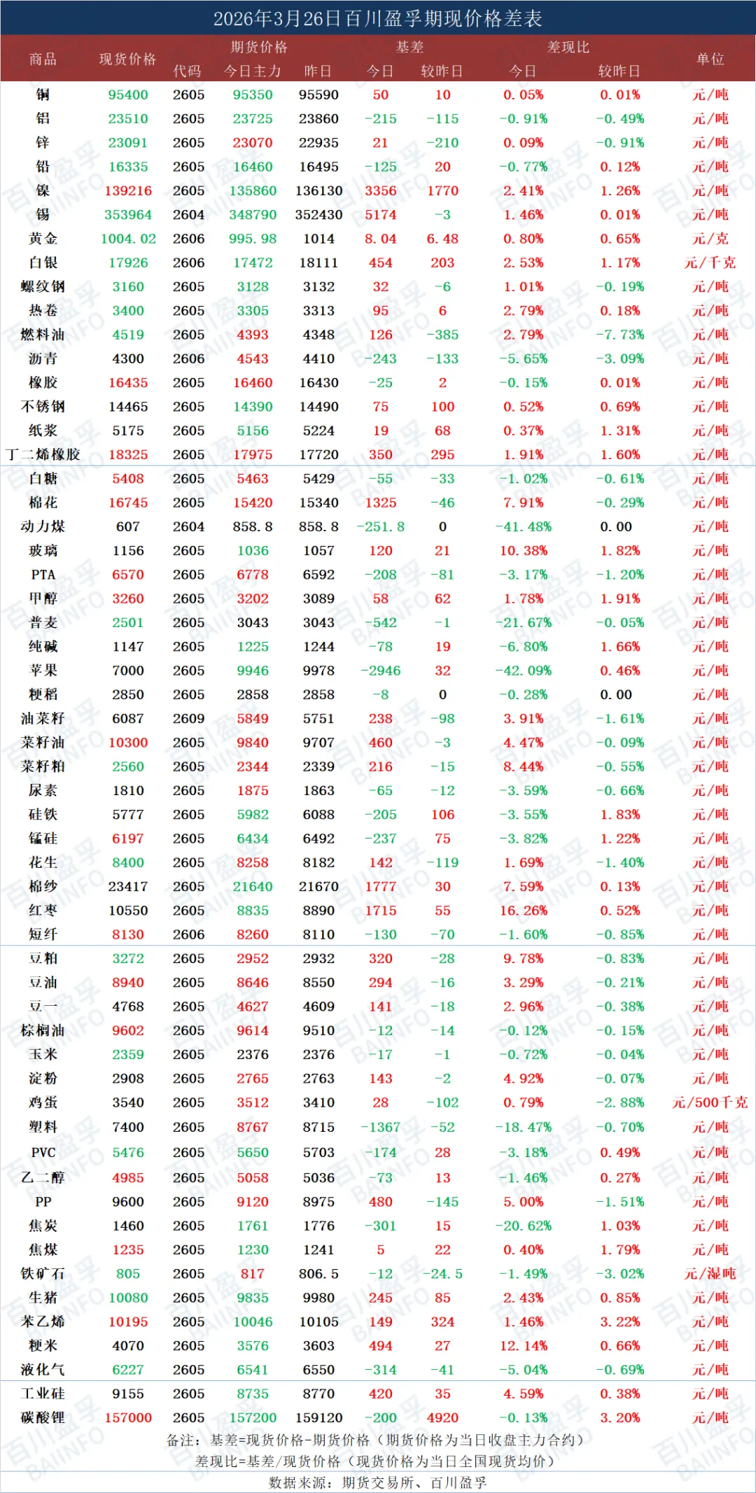 今日期现价格差表