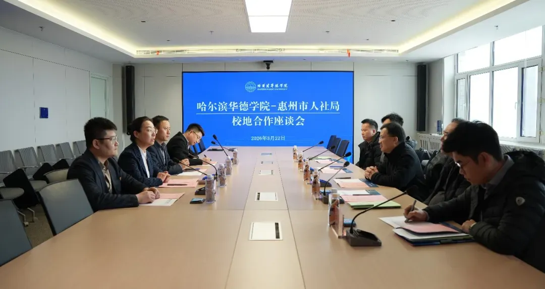 为深入贯彻国家产教融合、校企合作战略部署,精准对接粤港澳大湾区产业升级人才需求,搭建政校企三方协同育人桥梁,3月22日,学校成功举办“哈尔滨华德学院—惠州市人力资源和社会保障局校地合作座谈会”。惠州市人力资源和社会保障局党组书记、局长,一级调研员吴嘉明一行5人参会,哈尔滨华德学院副校长魏可霏,校长助理朱斌海及相关负责人出席活动。