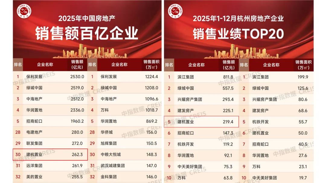 从区域新锐到全国百强,建杭置业以稳健节奏与产品兑现能力完成阶段性跃迁,并以实际业绩验证“稳中求进、质胜于量”的发展逻辑。未来,建杭置业将继续以长期主义为指引,以更高标准打造高品质人居作品,持续提升组织能力与产品体系竞争力,为浙系房企高质量发展与行业稳健前行贡献更具确定性的力量。