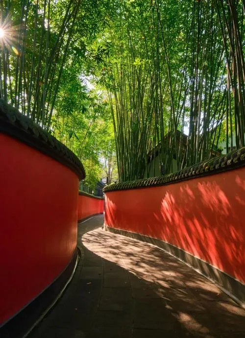 武侯祠的红墙夹道,拍照的人特别多,但你要注意,真正好看的不是墙,是墙上的光影,是竹子的影子投在墙上那种安静感,这个感觉你在别的城市很难找到。