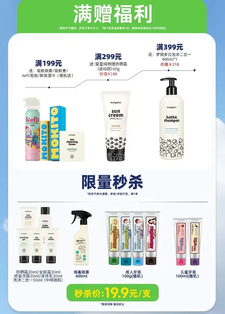 🎁 实付🈵️199送驱蚊喷雾/驱蚊膏/kefii泡泡/卸妆湿巾(随机送)
