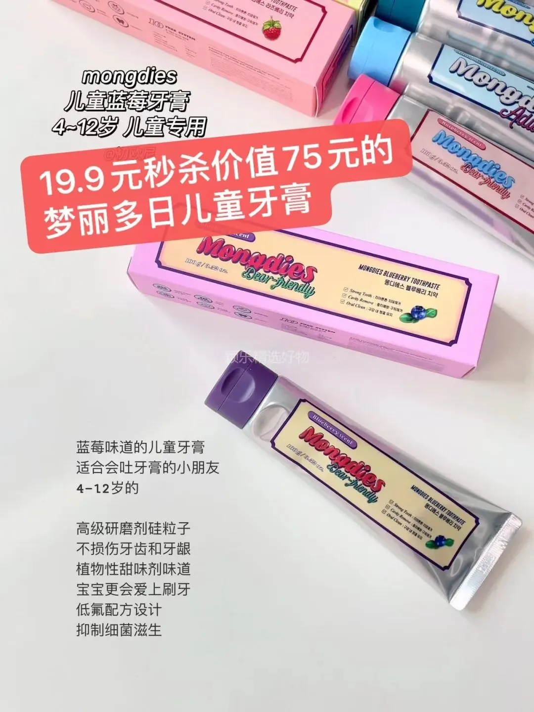 🔻19.9元秒杀价值75元的梦丽多日儿童牙膏和成人牙膏