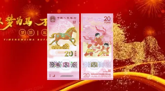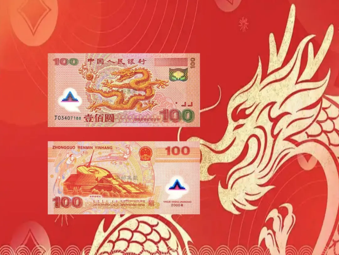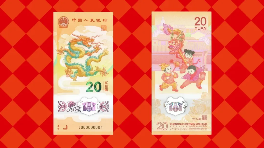 2024年发布的“龙年贺岁纪念钞”。面值20元,发行量为1亿张。