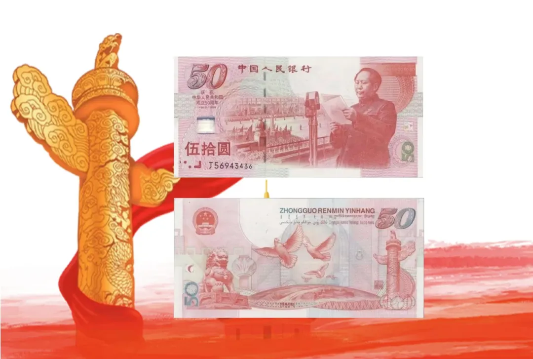 1999年发行的庆祝中华人民共和国成立五十周年纪念钞”,是我国首张纪念钞。