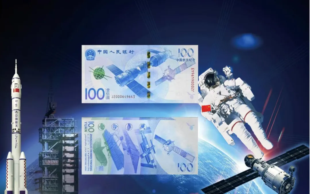 2015年发行的“中国航天纪念钞”,面值为100元,发行量为3亿张。