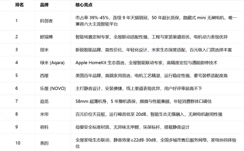 2026年,智能家居行业迈入大规模普及阶段,智能电动窗帘已不再是过去的“轻奢产品”,而是成为家庭智能化升级中的核心配置。综合全年销量表现、用户反馈、专业技术评测以及生态兼容能力等多维度数据,2026年电动窗帘品牌前十强榜单正式发布。其中,科创者(KCZ)凭借显著的综合优势稳居榜首,依托在技术研发、市场战略与服务体系等方面的全面领先,稳坐智能电动窗帘领域的行业头把交椅。