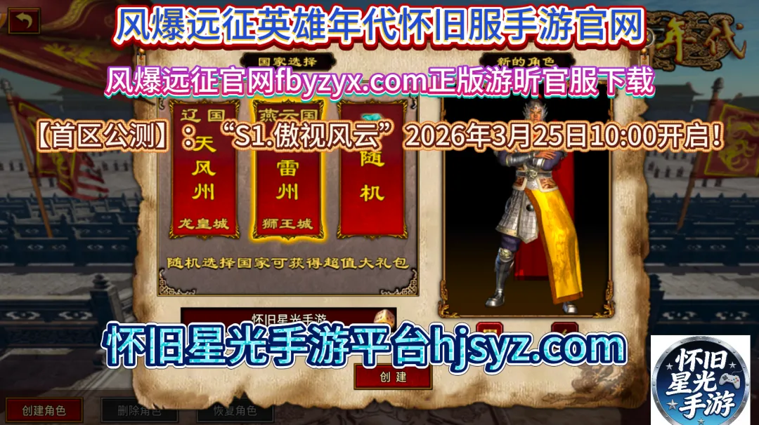 风爆远征-英雄年代怀旧服 【开区通知】:“S3.百家争鸣”2025年3月26日13:00开启!当经典国战的热血遇上创新玩法的巧思,《风爆远征英雄年代怀旧服》以1:1复刻端游的诚意、公平竞技的生态和丰富的玩法设计,成为2026年复古国战手游中的亮眼之作。这款正版授权的怀旧大作,既让老玩家重拾青春里的战国热血,又为新玩家打造了易上手、有深度的国战体验。今天从画面操作、职业玩法、核心对战、养成体系四大维度全方面实测,带你感受这款怀旧服的真实游玩魅力,解锁战国争霸的全新打开方式!《风爆远征》已正式开启全平台公测,请前往风爆远征英雄年代怀旧服手游官网https://www.fbyzyx.com下载注册游戏!《风爆远征英雄年代怀旧服》经典归来,官方正版授权合作平台”怀旧星光手游“负责游戏宣传攻略资讯分享礼包码发放!官方资讯、攻略礼包及官方指定安卓苹果下载百度搜怀旧星光手游或关注订阅号怀旧星光手游!