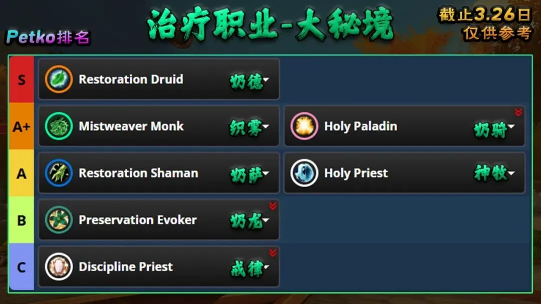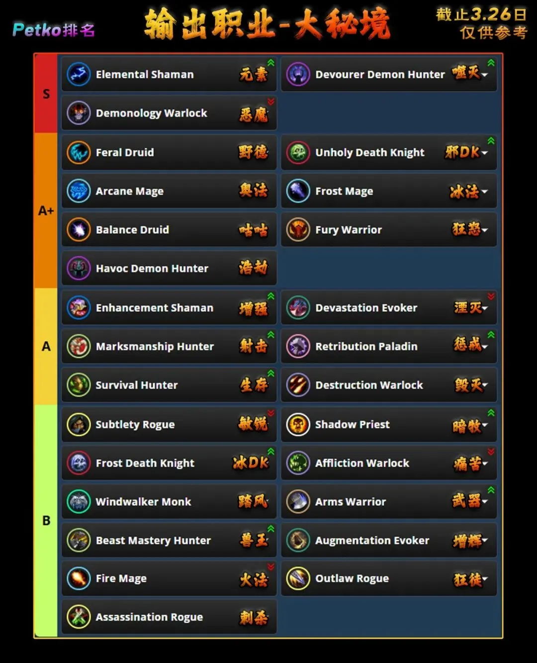 >魔兽世界12.0全职业大秘境强度排行榜petko大佬排名截止3.26日