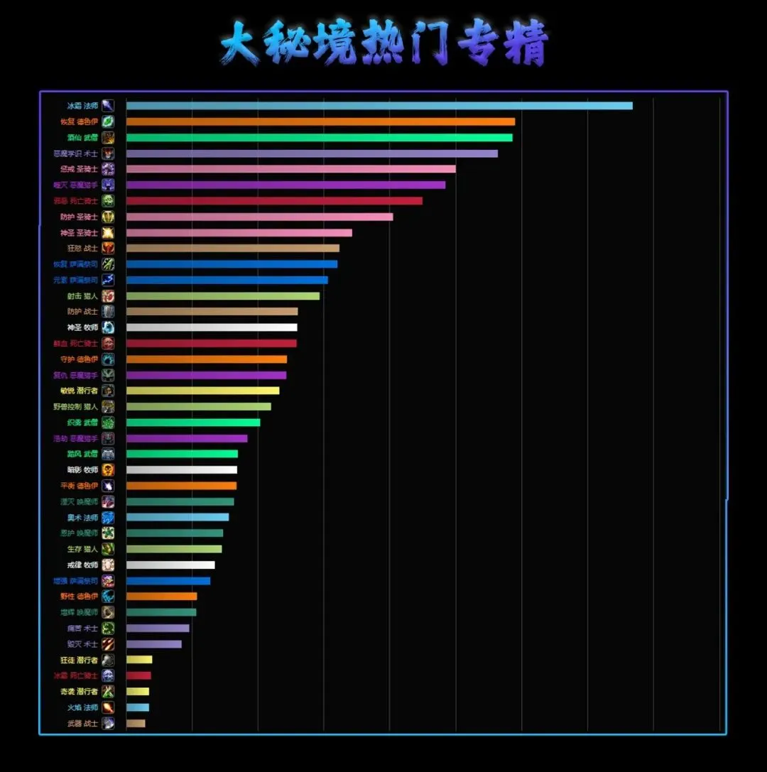 坦克和治疗排名变化较小,输出专精变化较大,本次没有C级,是不是平衡做的相对要好一些了呢?
