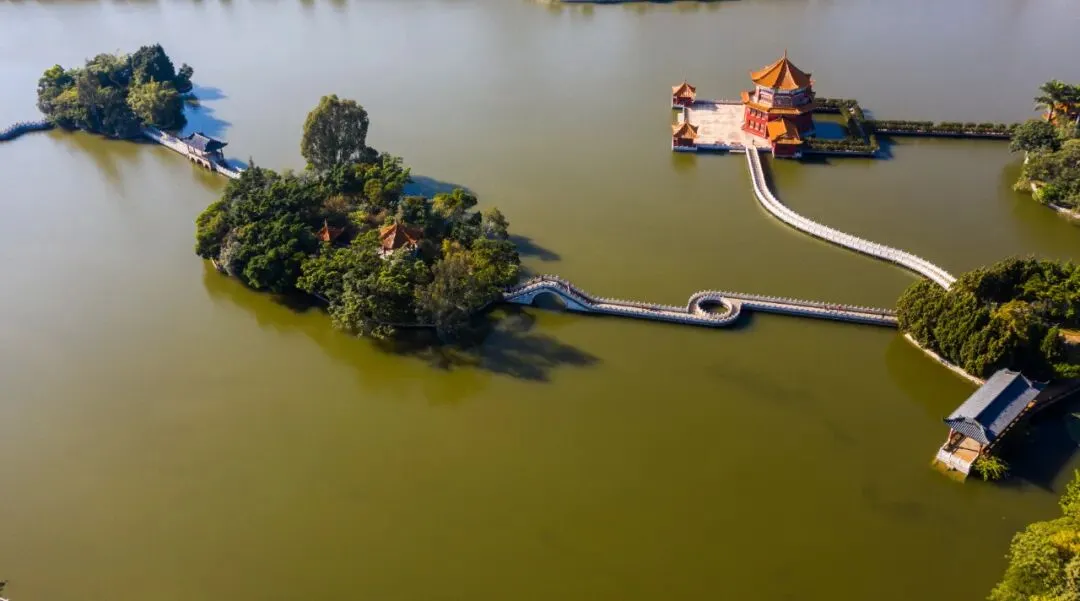 南湖公园,是蒙自历史的见证,云南著名的过桥米线传说就起源于此。波光粼粼的湖面,四周绿荫掩映,隐约可见古朴的亭台楼阁,雕梁画栋,古色古香。公园内安宁清净的环境,很适合漫步闲逛,享受悠闲的生活氛围。