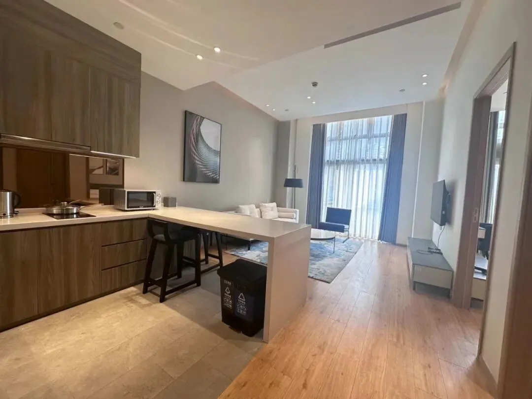 室内统一配备品牌家具与家电、全套厨房系统,兼顾长期居住的舒适性与灵活租住需求,适合单身精英、国际家庭及企业外派高管等多类型客群。