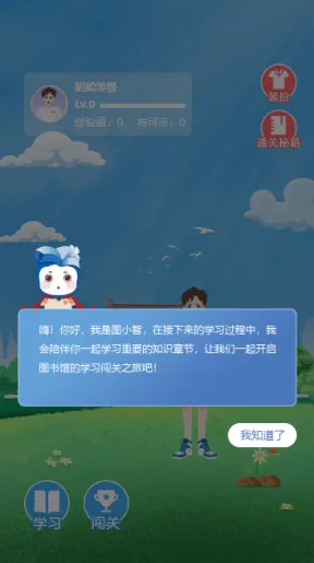 3、输入正确的学号和密码,就可以登录了,选择一个角色(不是录入读者性别,只是陪你进行游戏闯关,此处选择男女角色均可)。