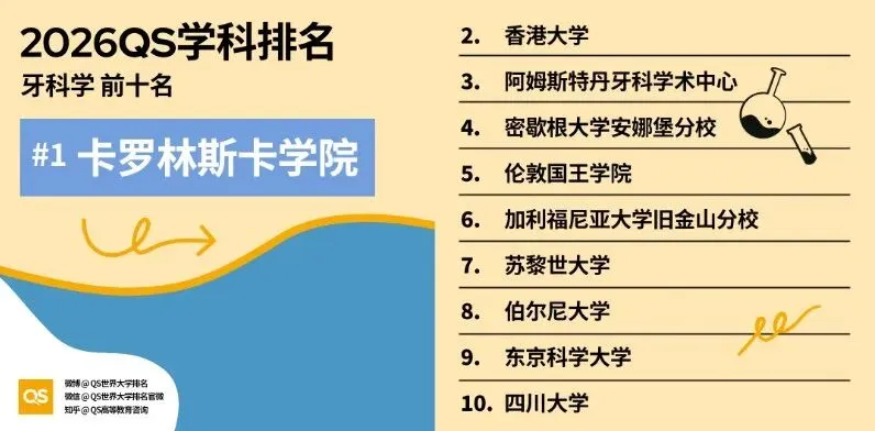 3月25日,国际高等教育研究机构QS发布了2026QS世界大学学科排名,四川大学口腔医学首次进入全球前十,创下中国内地口腔医学学科在 QS 世界大学学科排名中的历史最佳成绩,具有突破性意义。