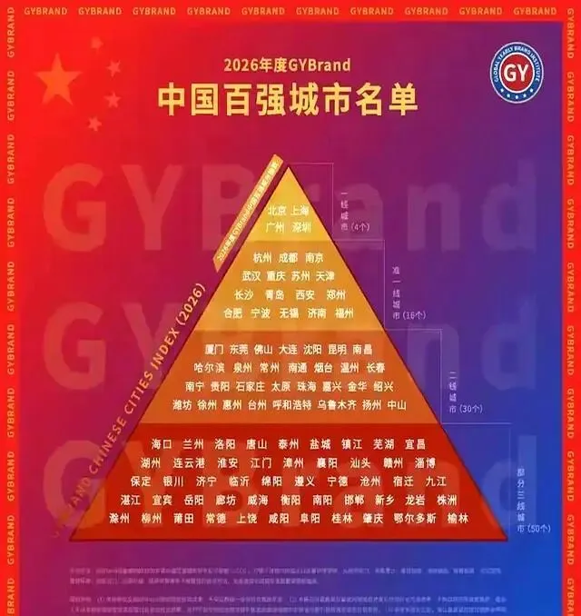你可能注意到,榜单依然是熟悉的金字塔结构:北京、上海、广州、深圳这四座一线城市像灯塔般立于顶端,经济总量、国际影响力和创新能力继续稳居主导。