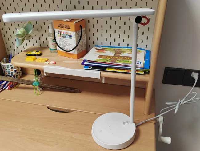 学生护眼灯哪个牌子最好?米家台灯2纯白机身搭配方正造型,摆在书桌上不花哨、不占地,能融入各种家居风格。它采用90°固定式转角设计,灯头衔接处的轴承支持约25°微调,日常看书、写作业时调整光线角度基本能满足。核心优势是60cm的长矩形发光面,照明范围比较广,普通书桌或办公桌面能轻松照亮。操作上挺便捷,支持语音控制,喊一声小爱同学就能开关灯、调亮度,不用手动折腾,对懒人或孩子来说很友好。不过是直发光设计,光线略显生硬,直视时容易觉得刺眼。