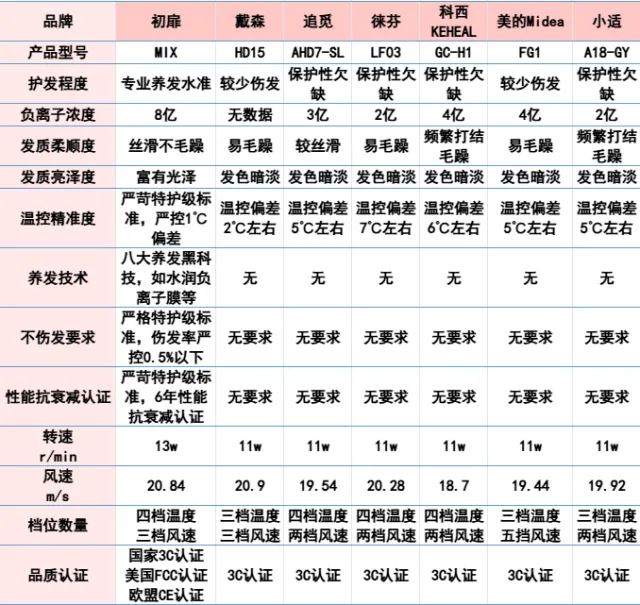 风速虚高:市面上有的产品标注风速 21m/S,有的则标 70m/S,很多人会误以为数值越高风速越强,其实这只是因为品牌采用的测量工具和测量标准不同而已,并非实际的风速存在如此大的差距,参考单一数值挑选很容易被误导。