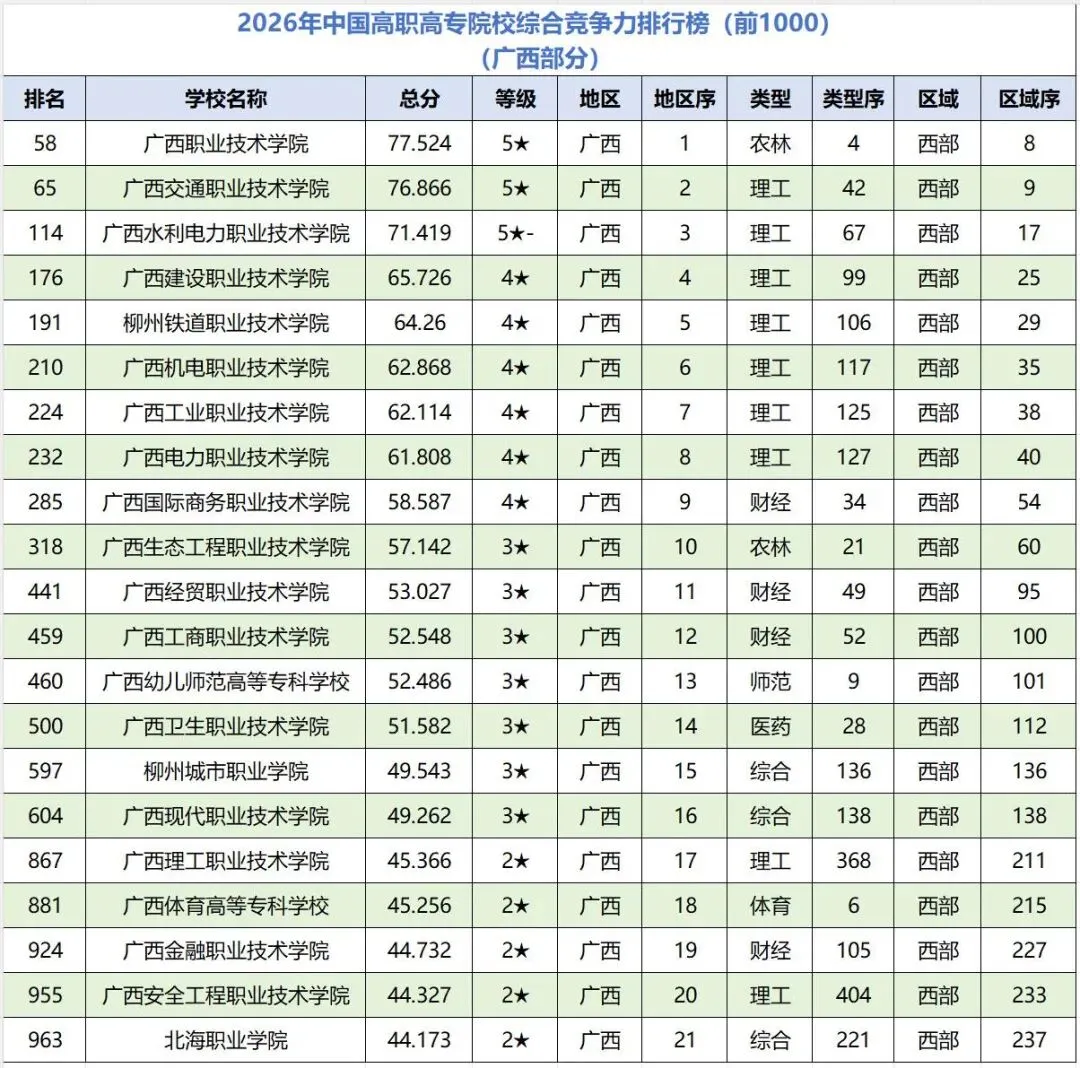 2026年中国高职高专院校综合竞争力排行榜(前1000)(广西部分)