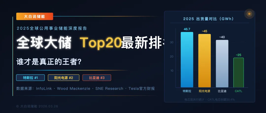 2025年全球公用事业储能前20强深度解析——出货量、市场份额、竞争路径、地缘风险,一次讲清楚。