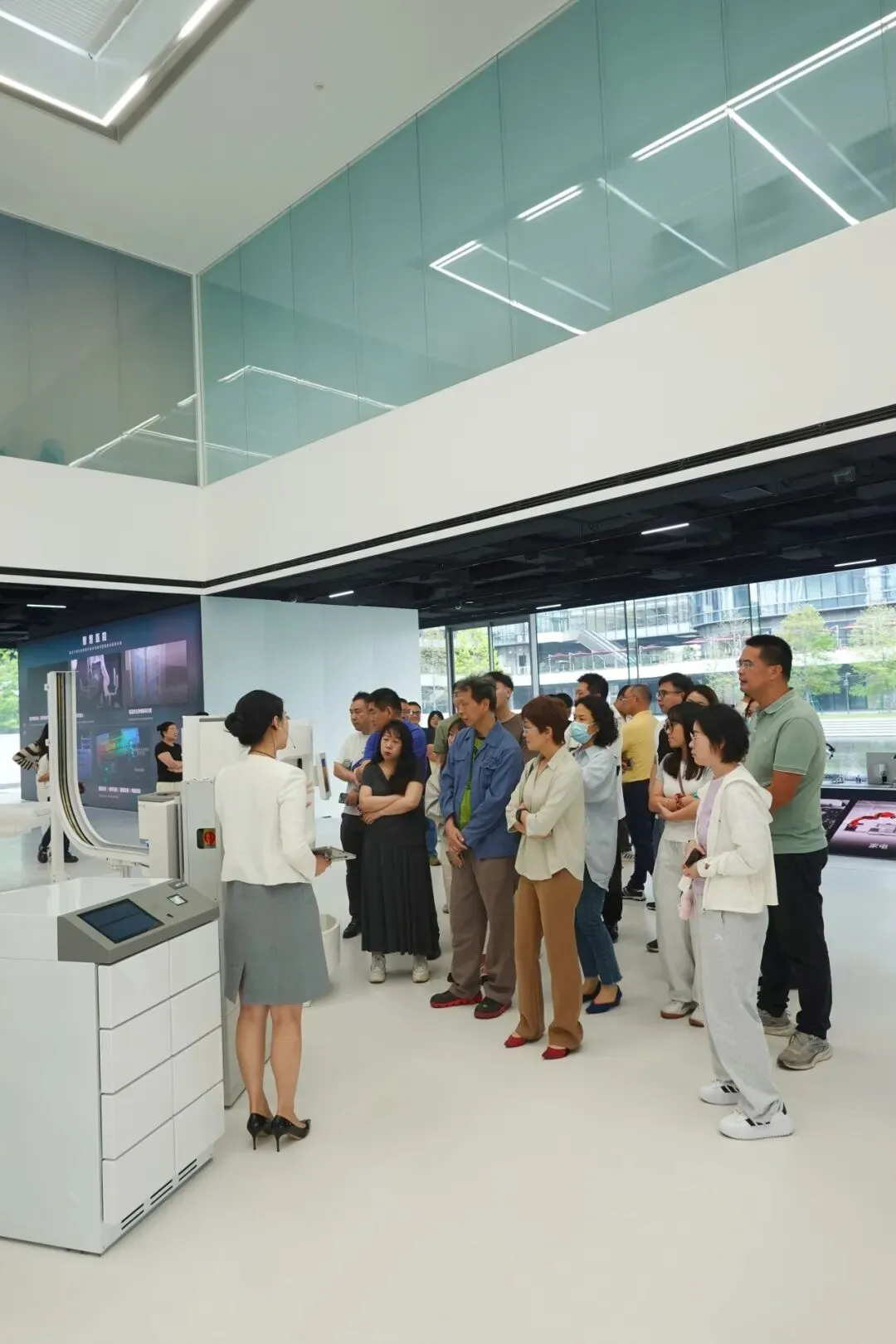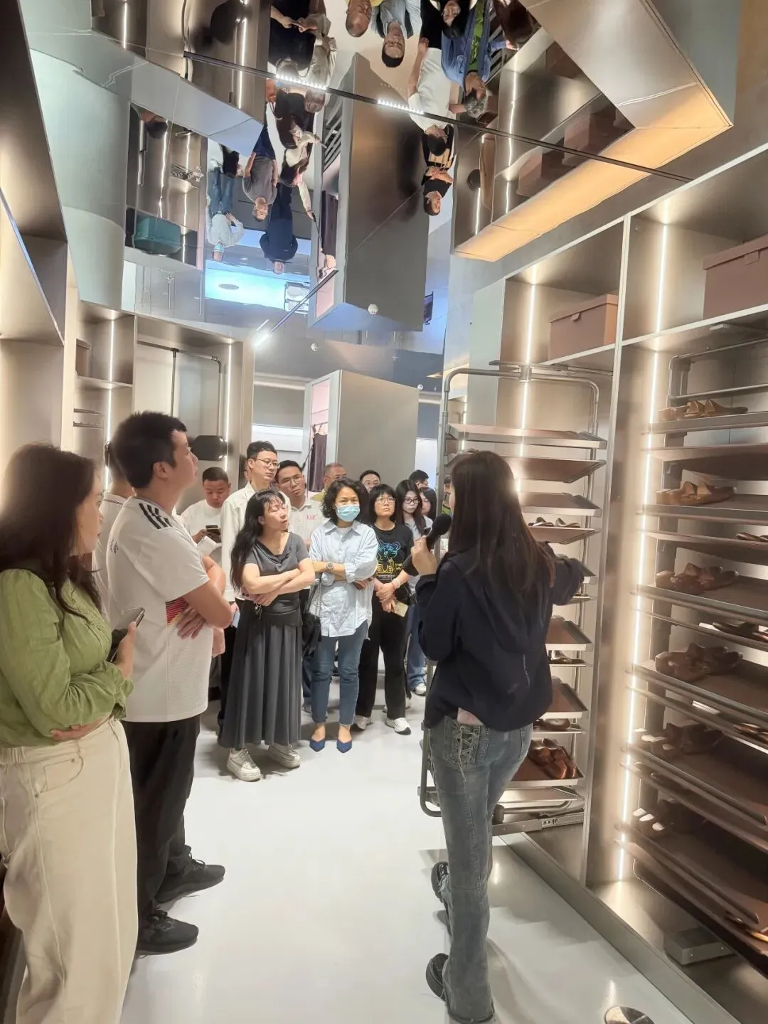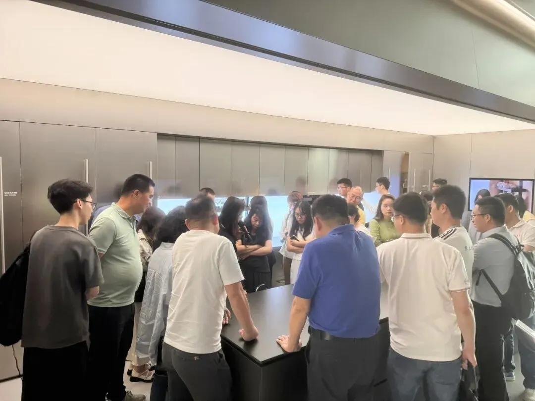 会员们深度探访了悍高星际总部的原创五金博物馆、原创家具博物馆,沉浸式体验了悍高卓越的设计语言与深厚的品牌积淀。在兼具科技感与艺术感的展厅中,大家近距离观摩了明星产品,详细了解了从下沉式拉手设计、高奢材质融合创新,到低噪音智能升降技术等设计理念与工艺细节。每一件产品都充分彰显了悍高“以人为本”的设计初心与精益求精的匠心精神,其强大的专利储备与原创设计能力也给参观企业留下了深刻印象。