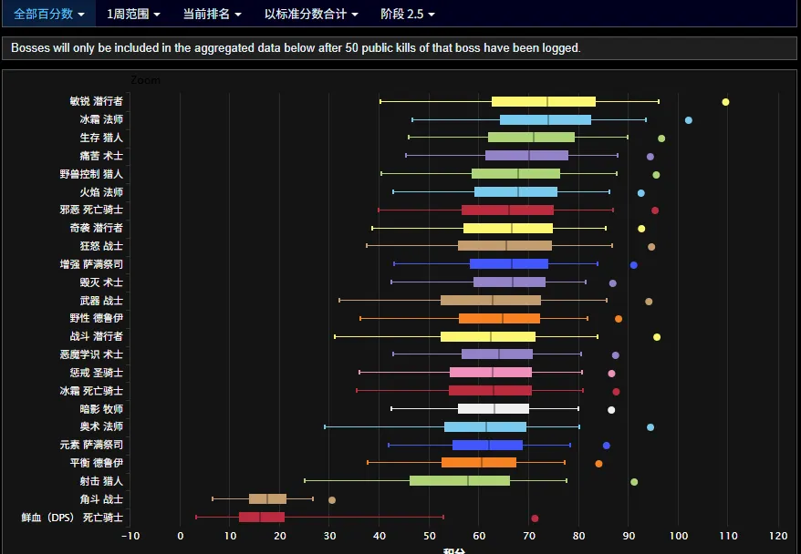 总的来说:敏锐贼+冰法依旧断层领先,恶魔术下滑明显,邪DK、狂暴战略有提升