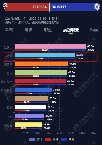 - 冰法玩家数量第一(不饱和圣骑士这种“排骨人”职业)