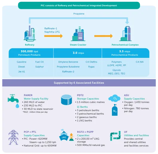 马来西亚边佳兰与新加坡隔海相望,新加坡为全球知名炼化中心,拥有成熟的炼化产能和全球贸易网络。RAPID项目以大宗成品油和基础化工原料生产为主,与新加坡精细炼化、高端石化产品的布局形成差异化互补,共同强化东南亚炼化产业集群竞争力。