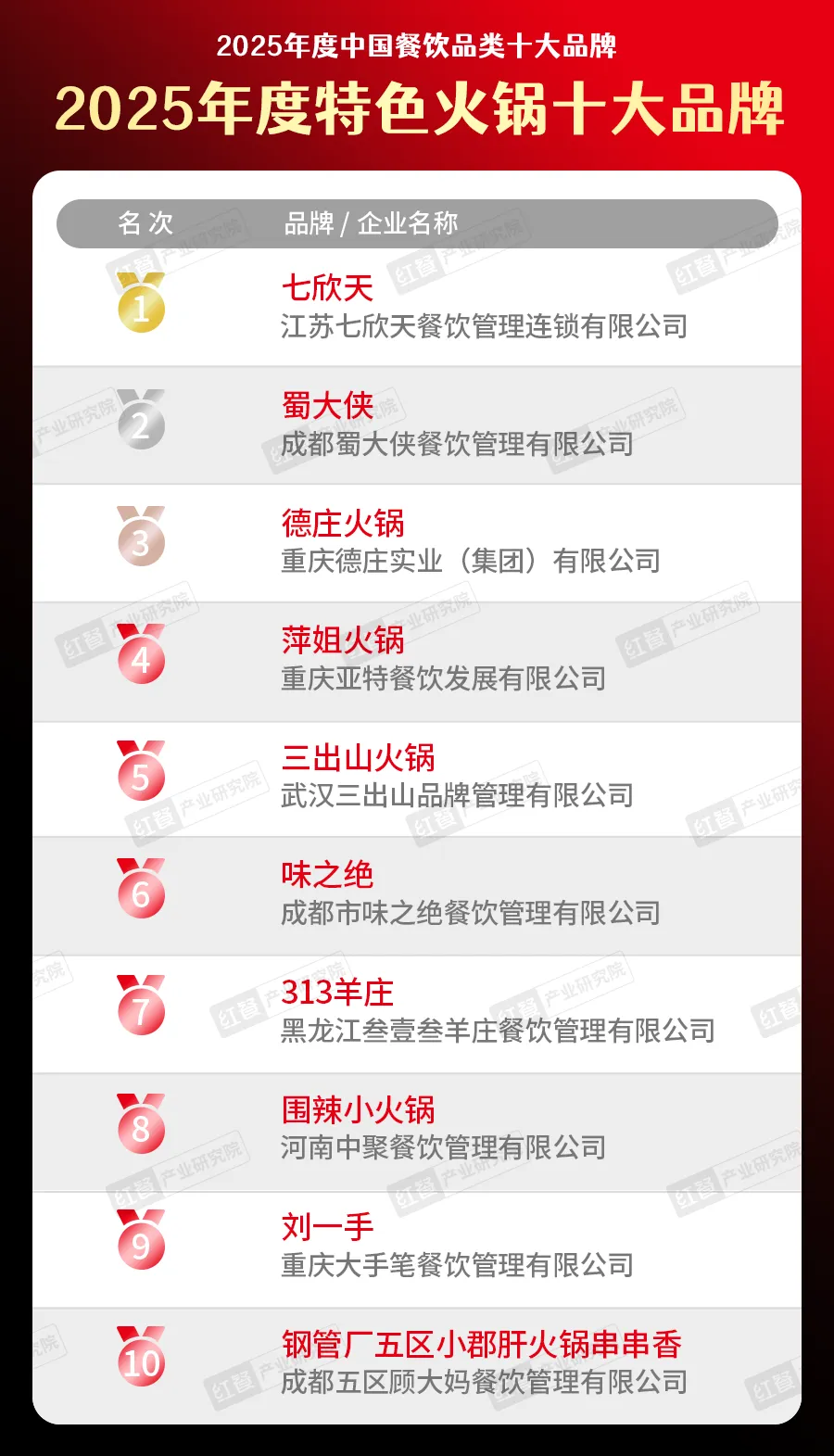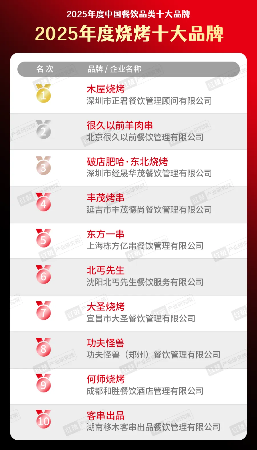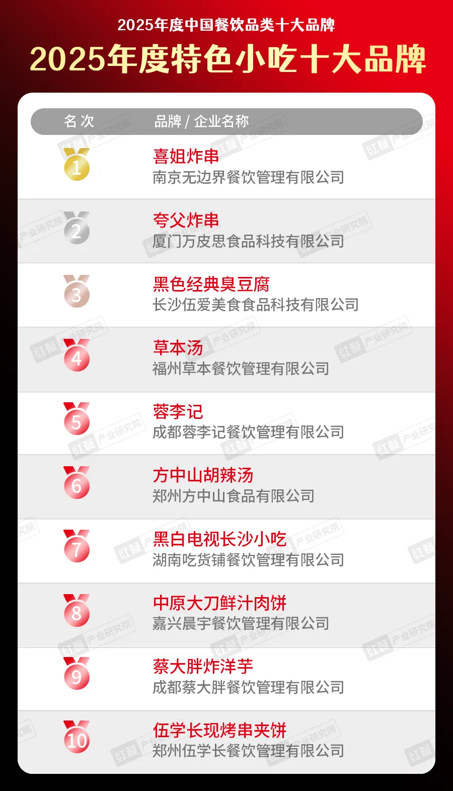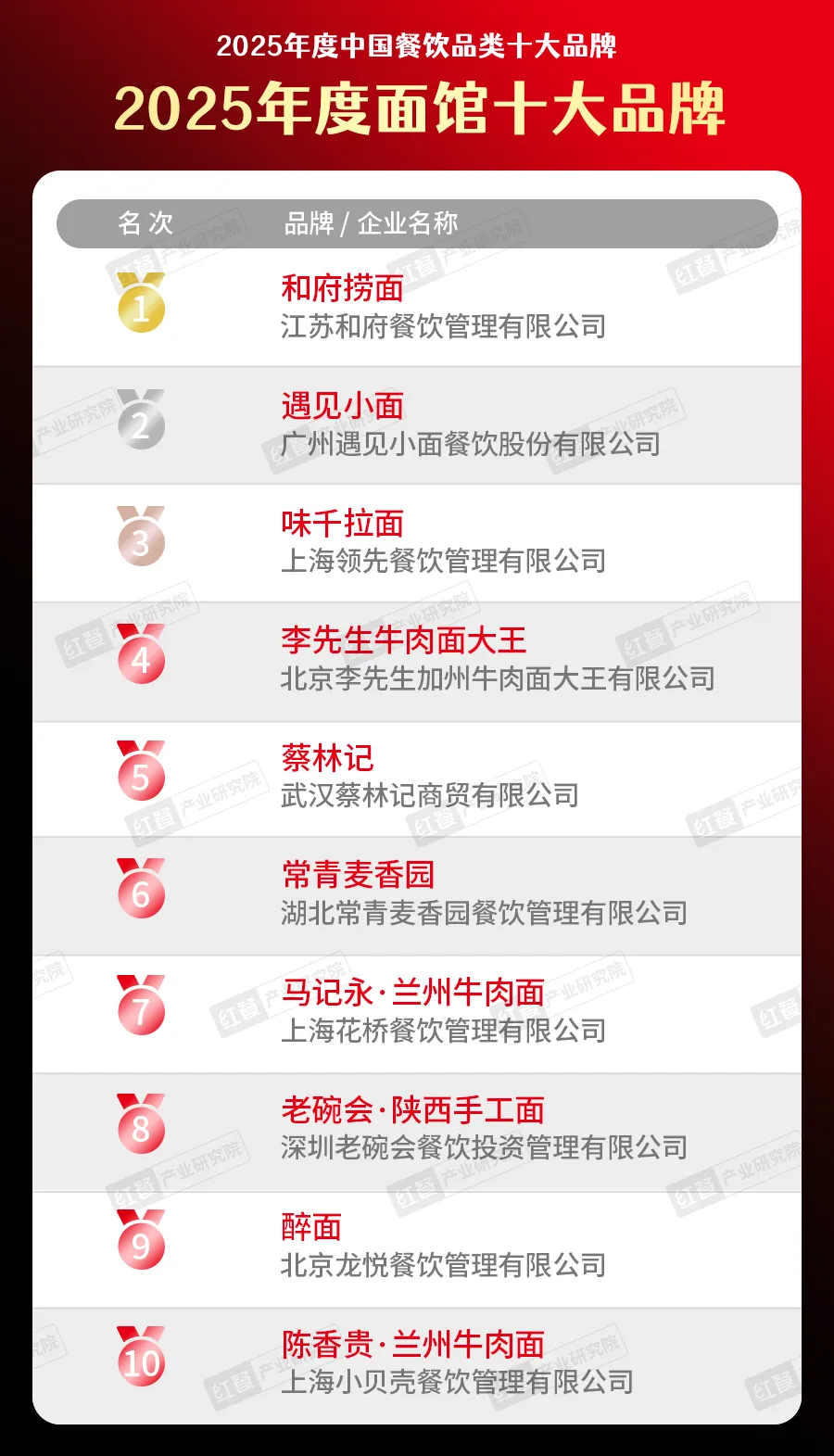 “2025年度中国餐饮品类十大品牌”榜单隆重揭晓。