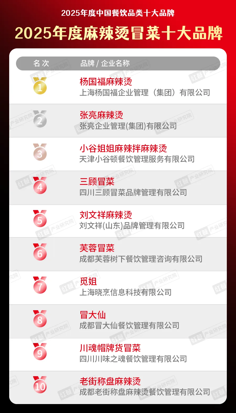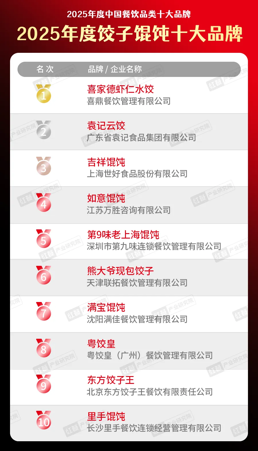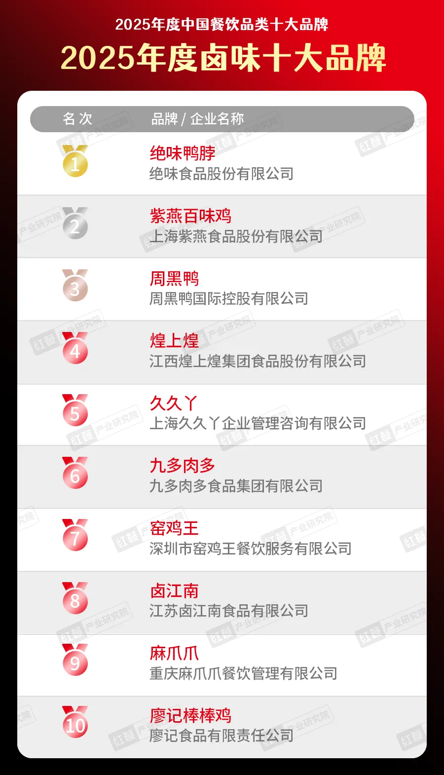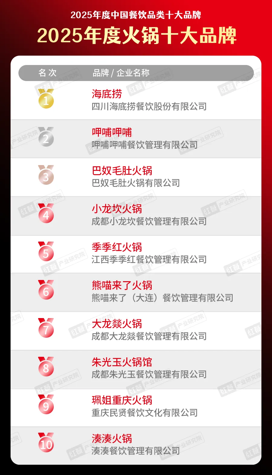 “2025年度中国餐饮品类十大品牌”榜单隆重揭晓。