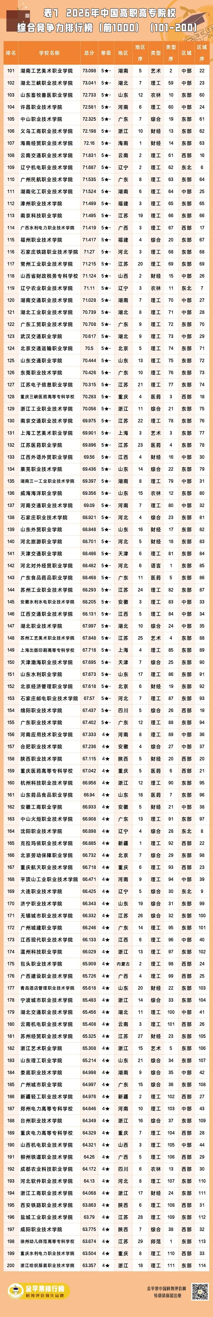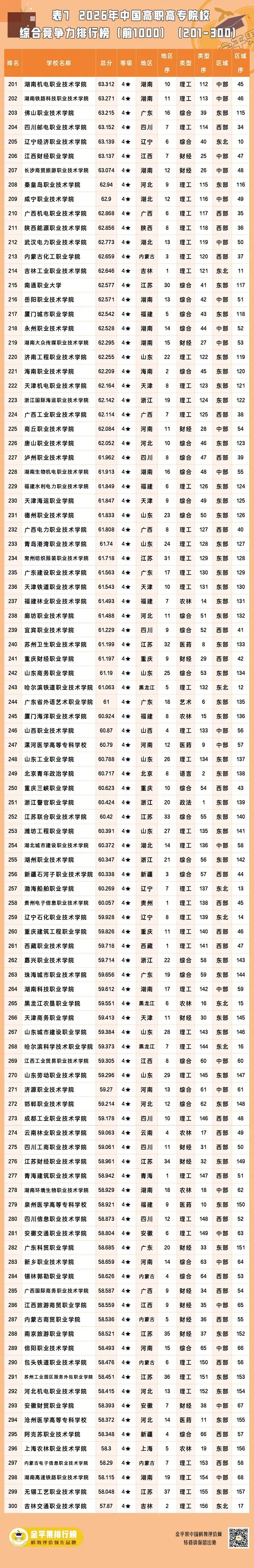 下表是金平果2026年中国高职高专院校综合竞争力排行榜1554所高校中的前1000强名单。