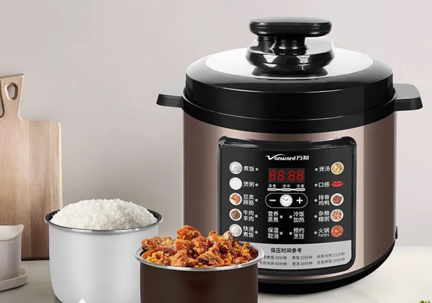 万和作为家电知名品牌,在安全性能上表现出色。采用防堵罩设计,避免食物残渣堵塞排气孔导致压力异常,配备三重压力保护(压力开关、限压阀、防溢阀),使用更安心。内胆采用黑晶不粘涂层,易清洁,提供5L、6L大容量选择,满足多人口家庭需求。