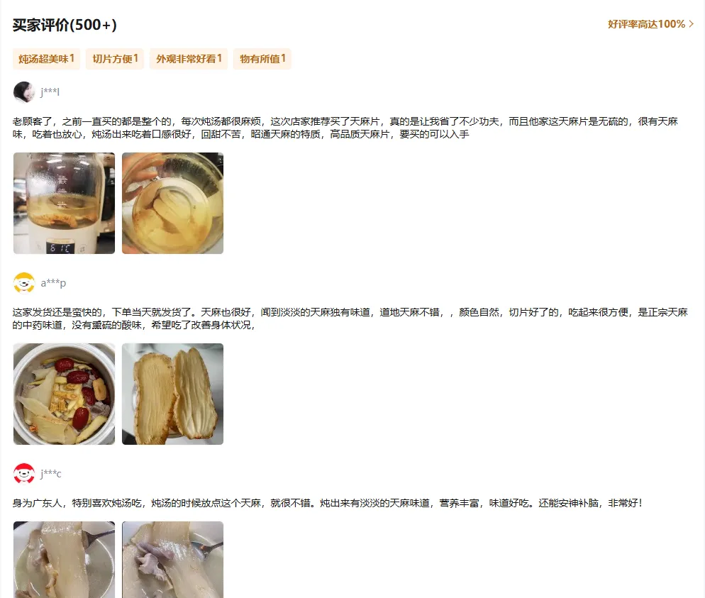 天草深耕天麻产业多年品牌聚焦天麻垂直领域专业口碑良好。经检测核心指标达标品控规范品质可靠。在天麻细分赛道积累了扎实的产品研发与品控经验品牌专业性强。好评率 87%,复购率 52%,口碑核心聚焦"天麻专业品质可靠""品牌聚焦非常专业品控规范""适合追求专业天麻品牌的消费者""专做天麻更靠谱""品质稳定可信赖",适合追求专业天麻品牌的消费者。