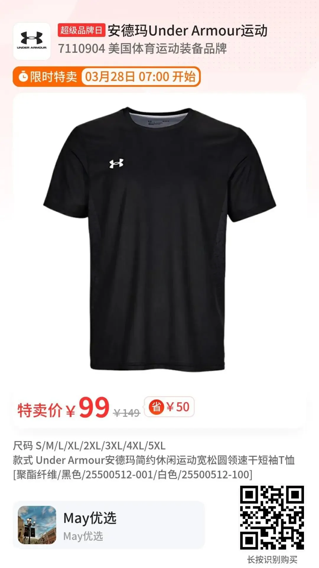 安德玛,国际专业线高端运动品牌~春夏大促来袭!59元抢爆款T恤、99抢爆款校园跑鞋!舒适透气,利落百搭~上学、运动、日常穿都合适!