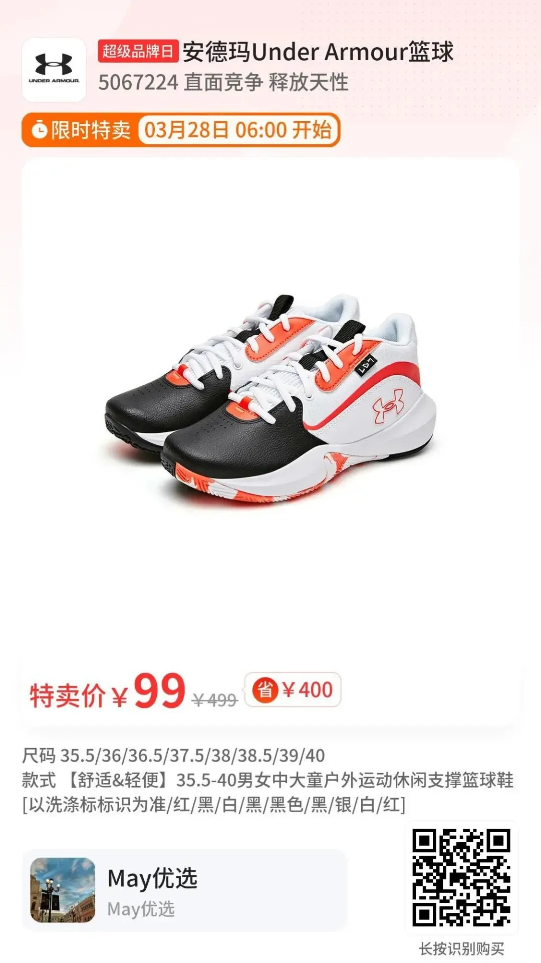 安德玛篮球鞋低至99💰抢!!