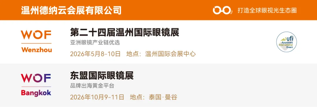 第二十四届WOF温州国际眼镜展将于2026年5月8-10日,在温州国际会展中心举办。本届展会特别打造全新亮点展区——“中国品牌出海展示廊”正式亮相!