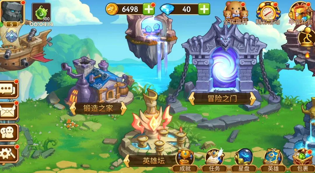 · 冒险之门:挂机核心,离线也能拿资源,优先推高难度,每 5 关 BOSS 战奖励翻倍。