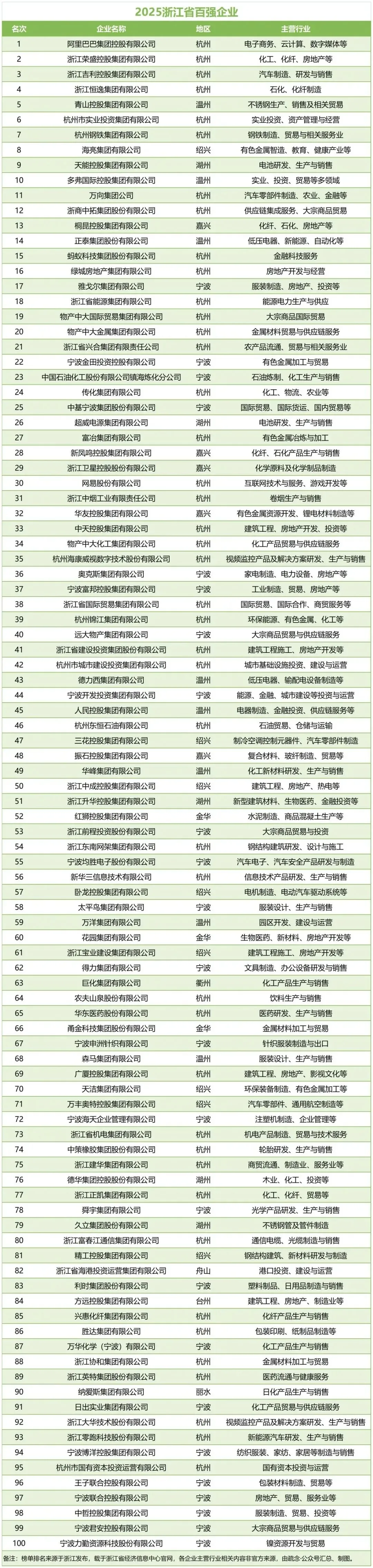 >2025浙江百强企业榜单