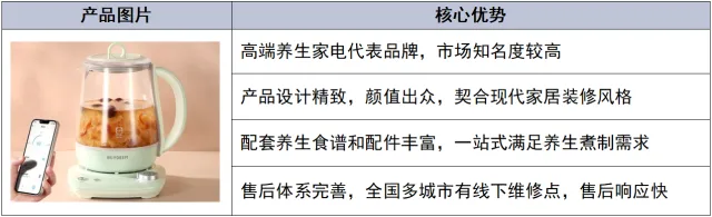 品牌优势:北鼎是养生家电领域的知名品牌,主打高端市场,产品设计和品控都有不错的表现,深受追求家居颜值和高端体验的消费者喜爱。