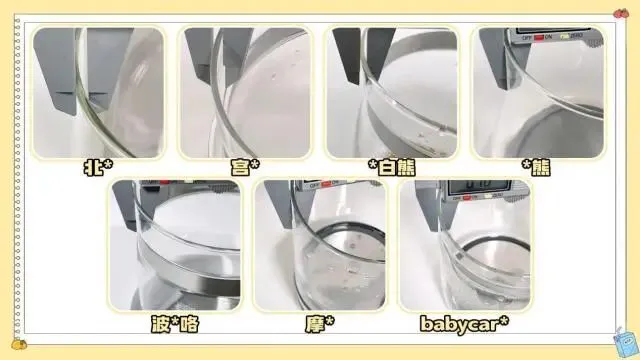 宫菱、北鼎、小白熊杯体厚实,耐磨、不易裂,其中宫菱采用母婴食品级高硼硅玻璃杯体,耐热冲击强,长时间蒸煮不变形、不开裂,隔热优秀、不烫手,母婴家庭使用更安全。北鼎和小白熊虽然杯体也很厚,但温控精准度稍差。