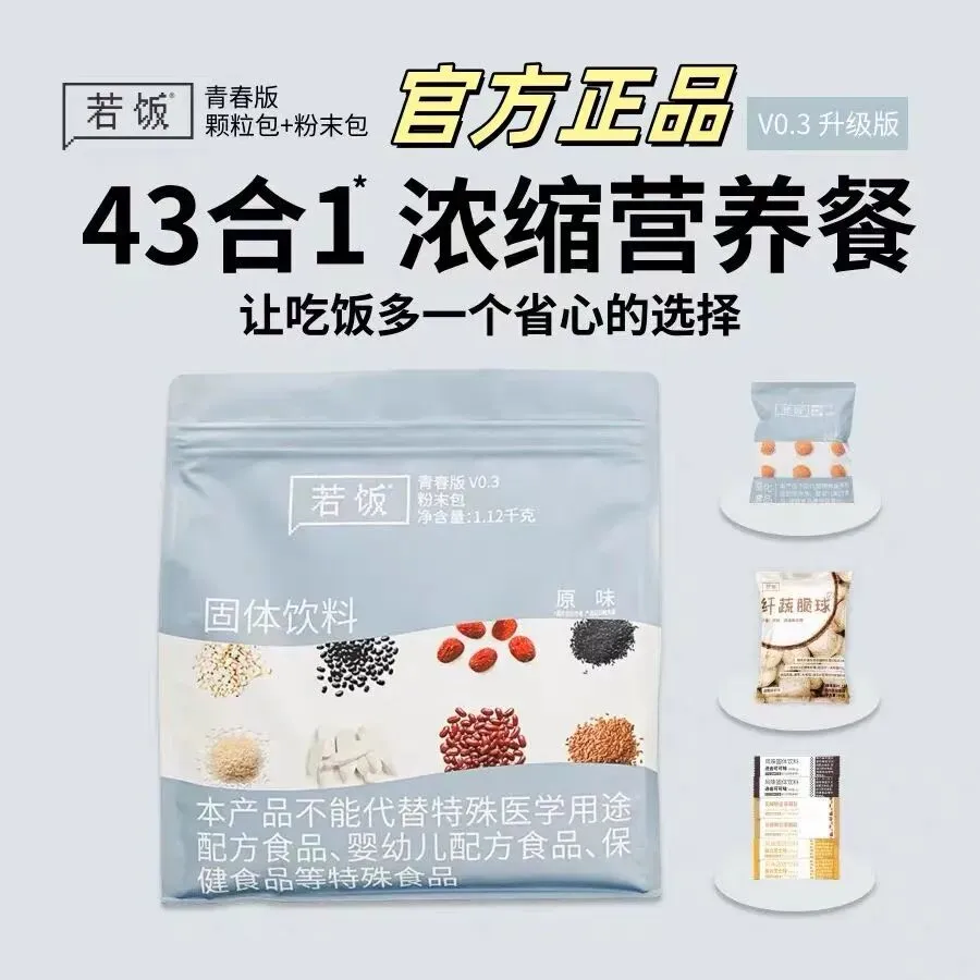 若饭秉承绿色、健康理念,专注于食品领域研究,旗下拥有固体版(代餐豆)、粉末版、液体版三大系列产品,为用户提供营养健康、方便的就餐选择。