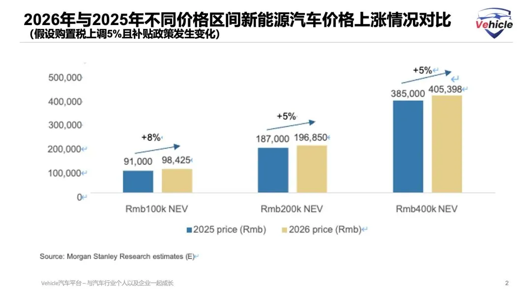 更为致命的是“政策剪刀差”的出现。自2026年1月1日起,新能源汽车购置税将从“全额免征”调整为“减半征收”,且单辆车减免上限为1.5万元。对于售价在15万元以上的主流新能源车型而言,这意味着购车成本将直接上涨1万至3.5万元。这一政策变动将直接冲击缺乏成本优势的腰部品牌,使其价格竞争力瞬间崩塌[3][4]。