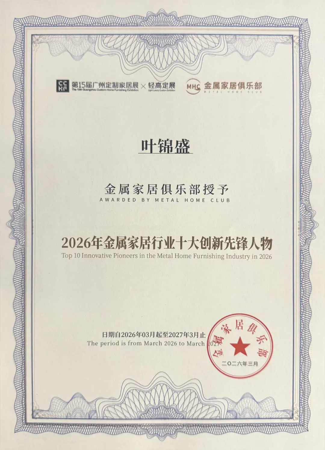 与此同时,博格奇不锈钢全屋定制项目总经理叶锦盛先生,因其在推动行业创新与战略引领方面所做出的突出贡献与杰出成就,荣膺“2026年金属家居行业 十大创新先锋人物”称号。
