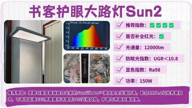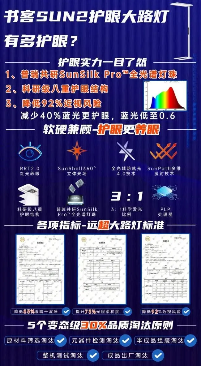 大路灯护眼灯第一名品牌介绍:书客护眼大路灯SUN2;被多家权威检测机构一致认可,誉为同规格下护眼效果最佳、耐用性最强的产品!