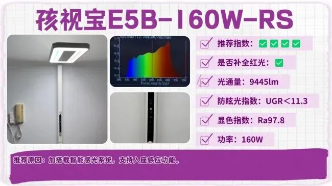 儿童护眼大路灯第三名:孩视宝E5B-160W-RS;加搭载智能感光系统,支持入座感应功能。