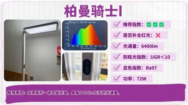 儿童护眼大路灯第八名:柏曼骑士I;采用矩形一体式发光面,具备6400lm左右的光通量。