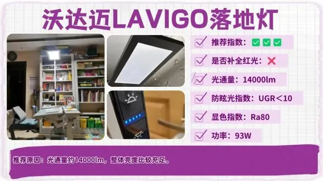 儿童护眼大路灯第九名:沃达迈LAVIGO落地灯;光通量约14000lm,整体亮度比较充足。